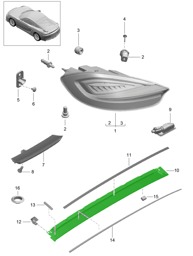 - Präzisionsgefertigte dritte Bremslichtbaugruppen von Porsche.