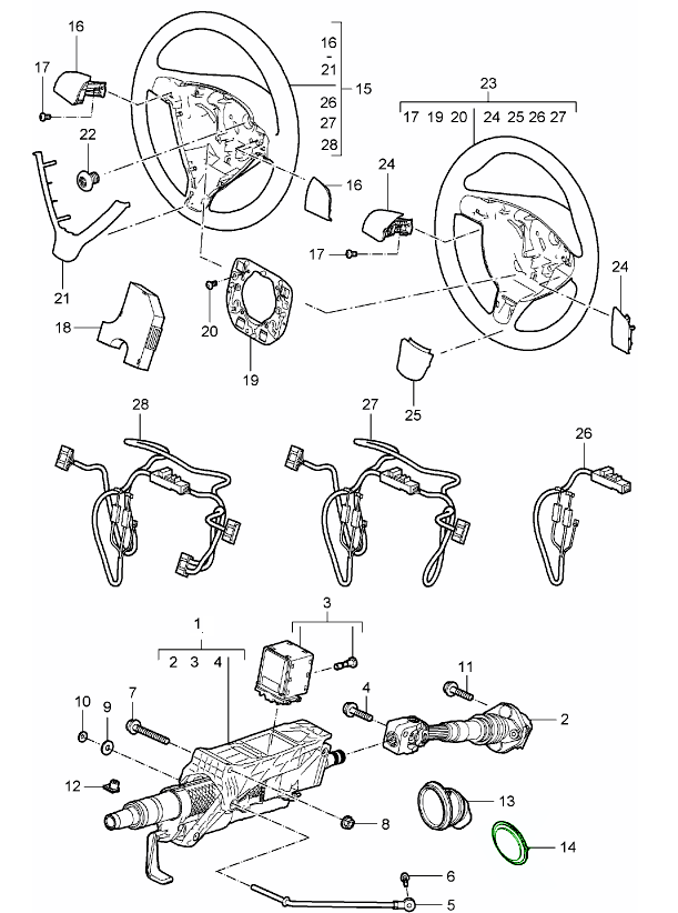 Kreuzgelenke und Lenkwellen bilden die wichtige mechanische Verbindung zwischen Lenkrad und Zahnstange Ihres Porsche und ermöglichen eine sanfte und kontrollierte Übertragung der Fahrereingaben. Diese Komponenten gewährleisten eine gleichbleibende Lenkpräzision, indem sie Winkeländerungen zwischen Lenksäule und Zahnstange ausgleichen und so eine stabile, vibrationsfreie Verbindung gewährleisten. Eine gut funktionierende Kreuzgelenk- und Wellenbaugruppe ist unerlässlich für das bekannte Porsche-Lenkgefühl – präzise, direkt und vertrauenerweckend.