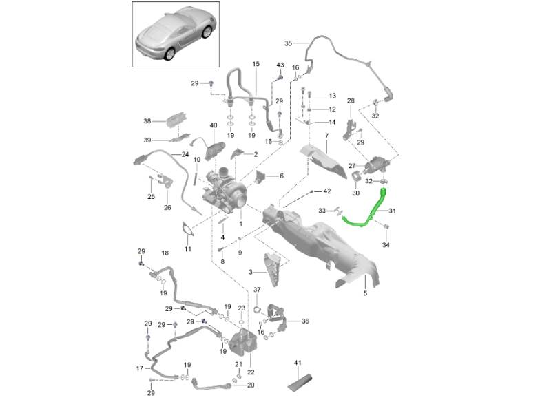 Abgasturbolader / mit: / Hitzeschutz / Ölleitung / Wasserleitung 718C (982C) Cayman 2017>> 202-005