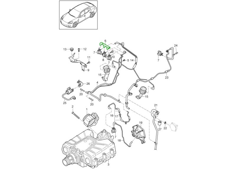 Drosselklappenadapter / Tankentlüftung / Unterdruckleitung (Modell: CGEA,CGE, CGFA) Panamera 970 (G1) 3.0L HYBRID 2012-16 107-022