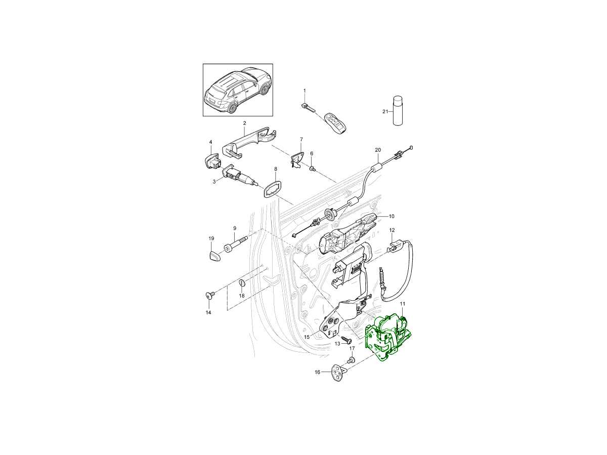 Türverriegelungsmechanismus für die Fahrertür bei Porsche Linkslenker (LHD).