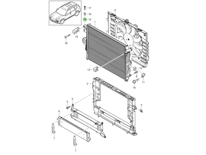 Die Lagerhülse für den Kühler ist ein Original-Porsche-Befestigungselement, das den Kühler im Kühlsystem des Fahrzeugs stützt und fixiert. Diese Hülse dient als stabilisierende Führung und Abstandshalter und trägt dazu bei, dass der Kühler korrekt positioniert und sicher befestigt ist, um Bewegungen, Vibrationen und Beschädigungen durch Überlastung zu vermeiden.
