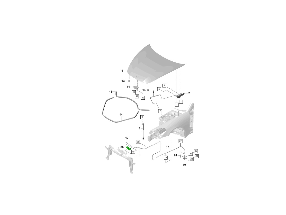 - Greift in die Schließplatte der Motorhaube ein.