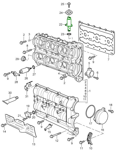 Nockenwellendeckel und Dichtungen spielen eine wichtige Rolle bei der Abdichtung und dem Schutz Ihres Porsche-Motors. Der Nockenwellendeckel (oft auch Kipphebeldeckel oder Ventildeckel genannt) umschließt die Oberseite des Motors und schützt interne Komponenten wie Nockenwelle, Ventile und Steuerkette vor Schmutz, Ölverlust und Verunreinigungen. Die Dichtung sorgt für eine luftdichte Abdichtung zwischen Deckel und Zylinderkopf, verhindert Öllecks und sorgt für eine ordnungsgemäße Motorschmierung.