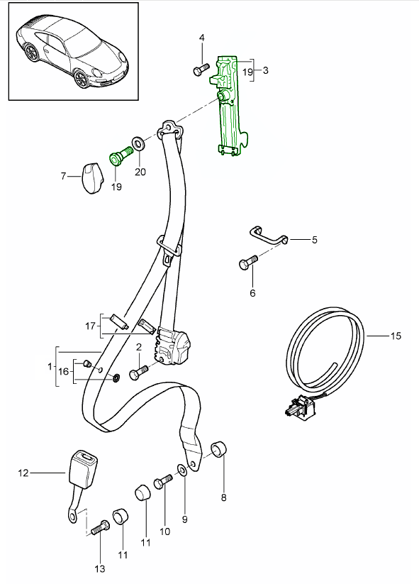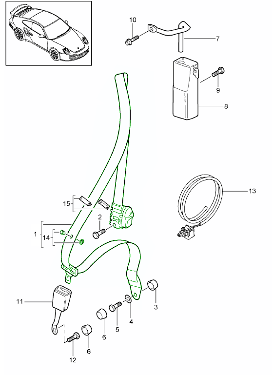 • Premium-Sicherheitsgurte und Gurtkomponenten für die Vordersitze von Porsche.• Hergestellt aus hochfestem Gurtband und technischer Hardware.