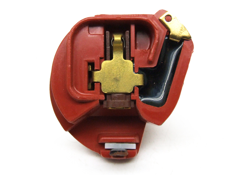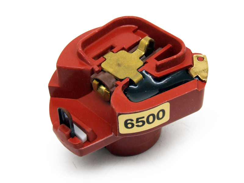La cabeza del "rotor" está unida a la parte superior del eje del distribuidor que es impulsado por un engranaje en el árbol de levas del motor y, por lo tanto, sincronizado con él. Este rotor se presiona contra una escobilla de carbón en el terminal central de la tapa del distribuidor que se conecta a la bobina de encendido ya sea a través de la parte superior y conectado directamente a la bobina en los sistemas HEI, o a través del terminal central en los sistemas de encendido de puntos y conectado de forma remota a la bobina. bobina.