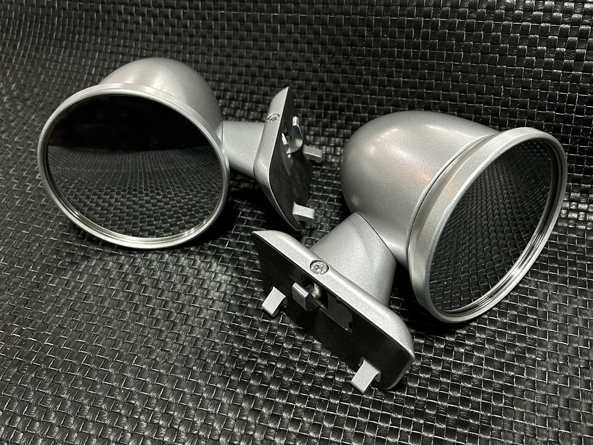 Nosotros también hemos pasado más de un año diseñando y probando estos espejos de bala totalmente de aluminio que son un reemplazo fácil de atornillar para los espejos originales en todos los Porsche 911 de 1965 a 1973 con orificios de montaje de distancia de 40 mm originales.
