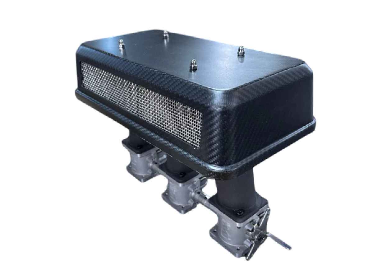 Cubiertas de filtro de aire de fibra de carbono para motores Porsche Flat-Six, inspiradas en los filtros de aire de malla abierta del legendario Porsche 917. Estas cubiertas meticulosamente diseñadas están hechas a medida para motores Porsche Flat-Six con carburadores Weber, PMO o ITB que utilizan el filtro de aire ovalado Weber estándar, ofreciendo una combinación única de flujo de aire mejorado y atractivo estético incomparable.