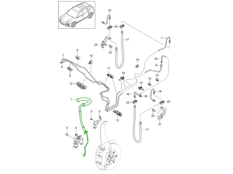 La manguera de freno delantera es un componente original de Porsche diseñado para transferir de forma segura el líquido de frenos entre las tuberías rígidas y las pinzas de freno delanteras. Diseñada para ofrecer flexibilidad y durabilidad, esta manguera permite el movimiento de la suspensión y la dirección, manteniendo una presión hidráulica constante.