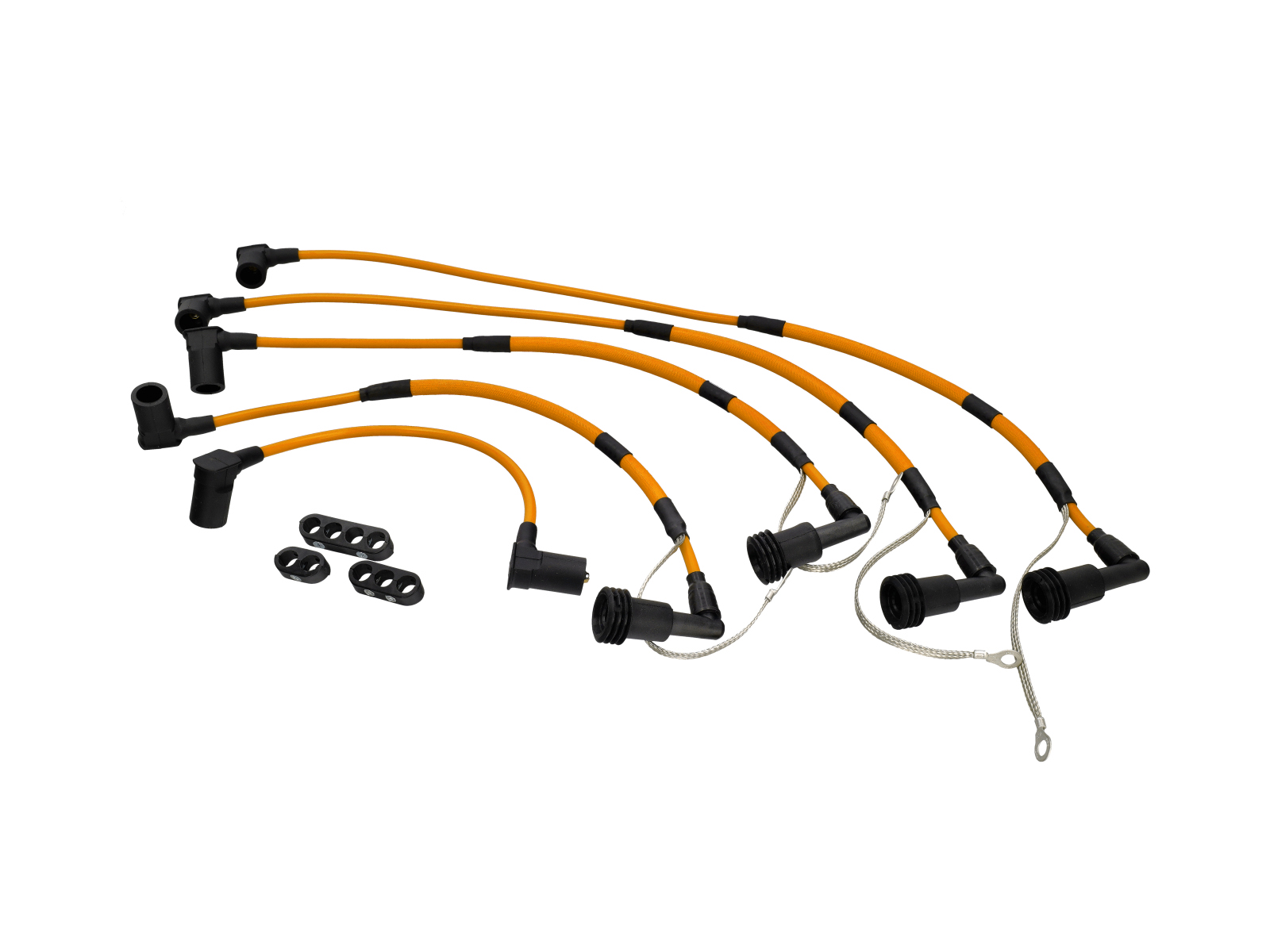 Los conjuntos de cables están disponibles en: rojo, negro, naranja, amarillo, azul, morado y plateado.