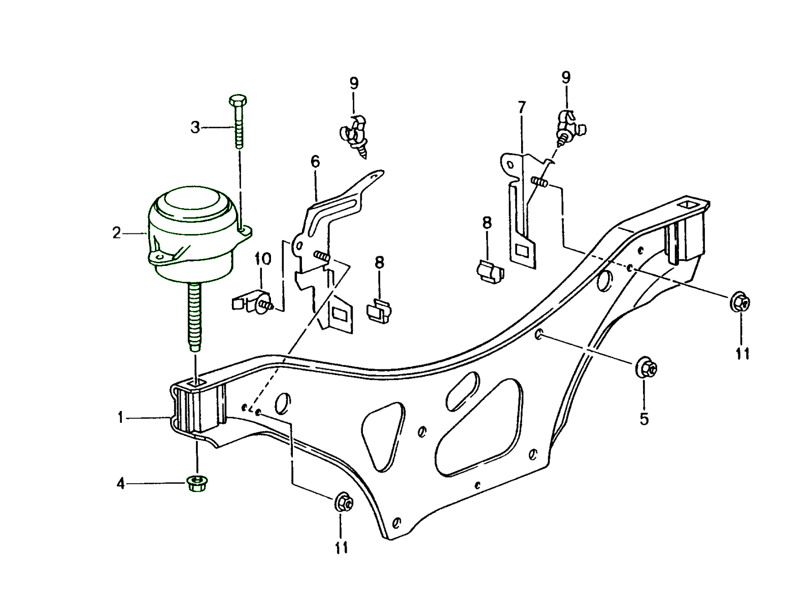 • Engine Support: Secures the engine to the chassis and rear subframe