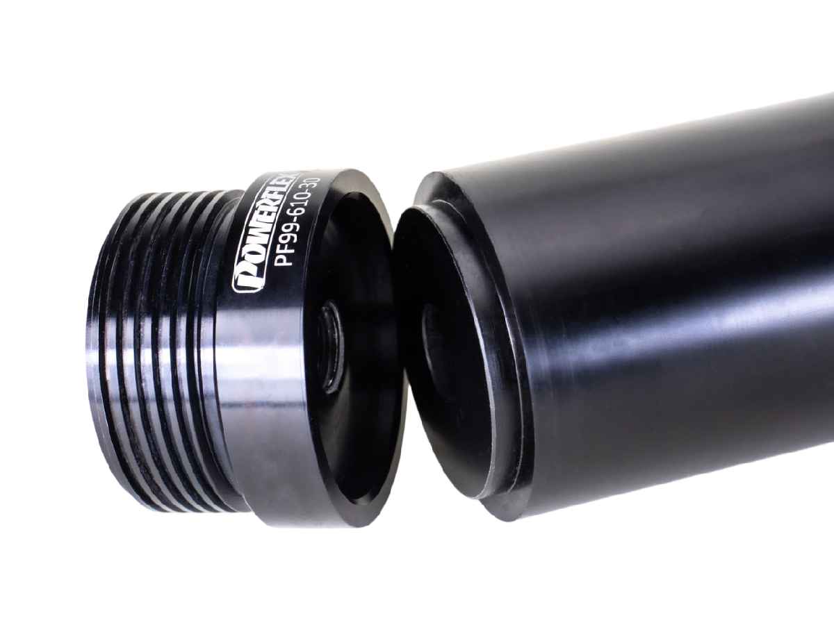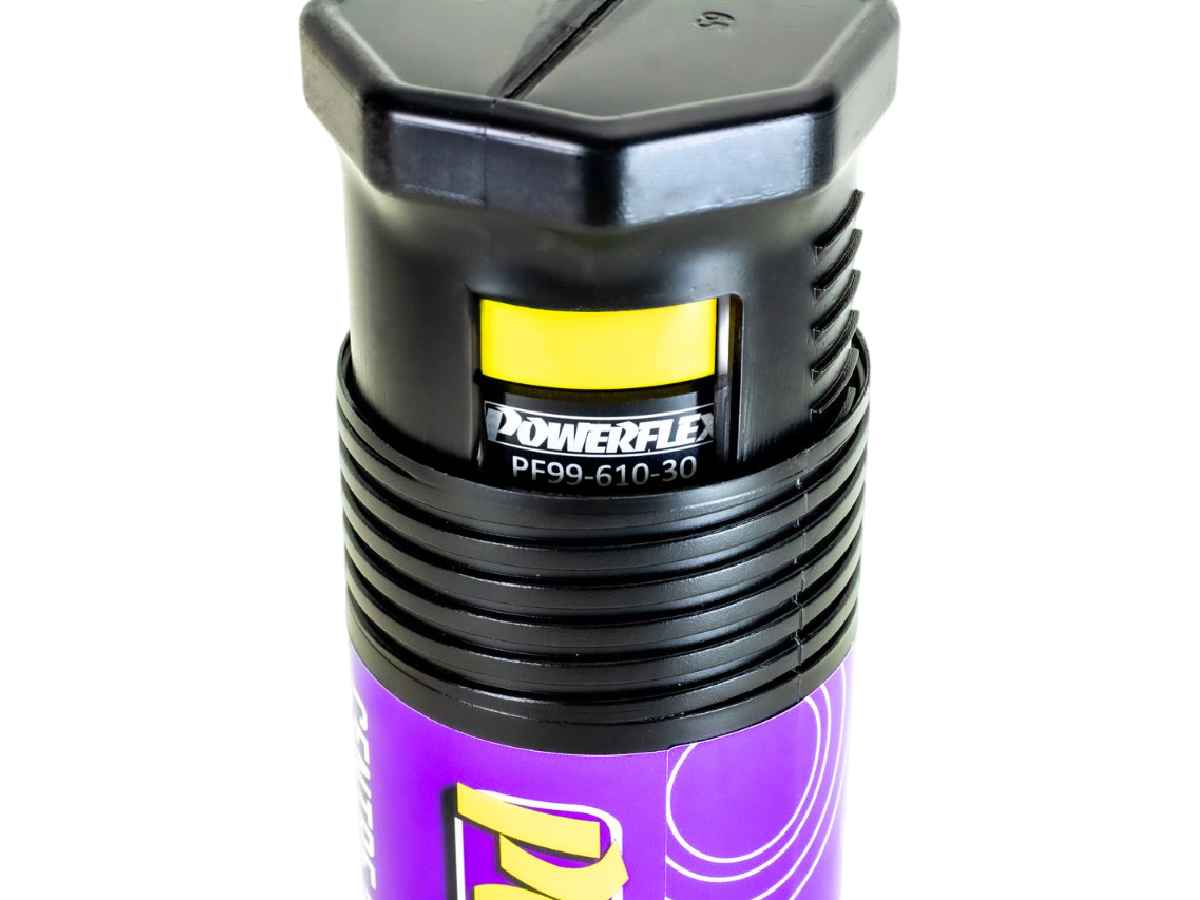 Los bujes Powerflex Black Series se fabrican con un compuesto de 95 Shore A para proporcionar el máximo control de la geometría del chasis. Este compuesto puede ser hasta un 80 % más resistente a la carga que el caucho estándar y un 25 % más rígido que nuestro material de alto rendimiento morado.