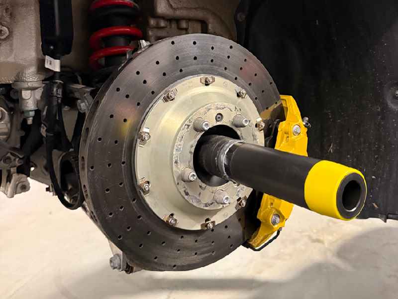 Si una rueda patina durante la instalación o el desmontaje, puede dañar fácilmente las pinzas de freno pintadas o los costosos discos de freno carbocerámicos (PCCB). El pasador guía mantiene la rueda firmemente sujeta.