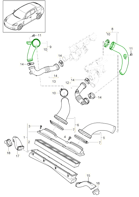 Kit de instalación de conducto de aire compartimento del motor/filtro de aire para Porsche 957 Cayenne S / turbo V8 snorkel de aire