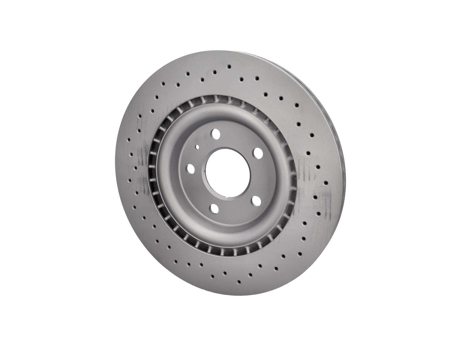 El disco de freno deportivo Zimmermann se desarrolló a partir de la experiencia con discos de freno en vehículos de producción en serie relacionados con las carreras. El sistema de frenos se optimiza combinando materiales de fundición de alta calidad con una superficie de frenado perforada.