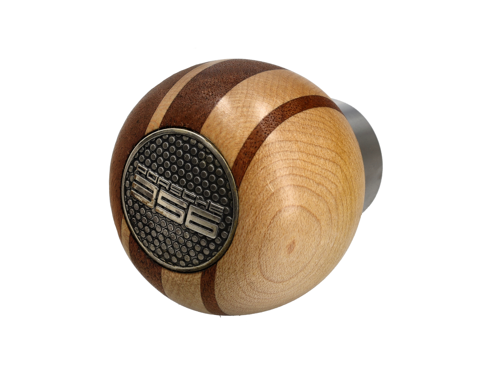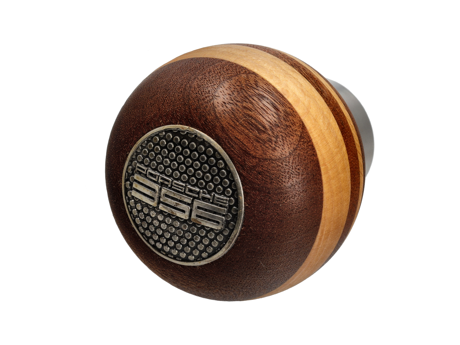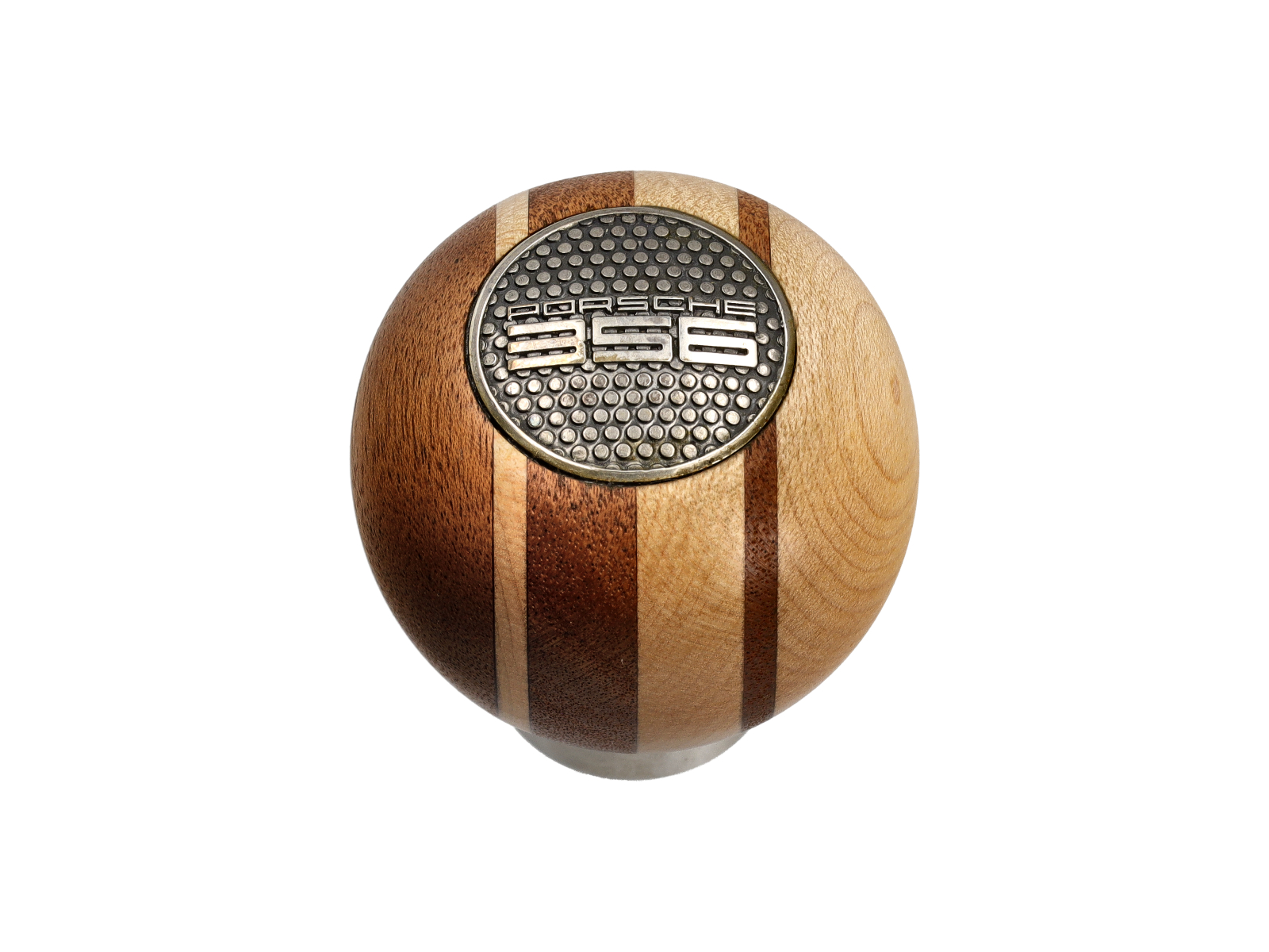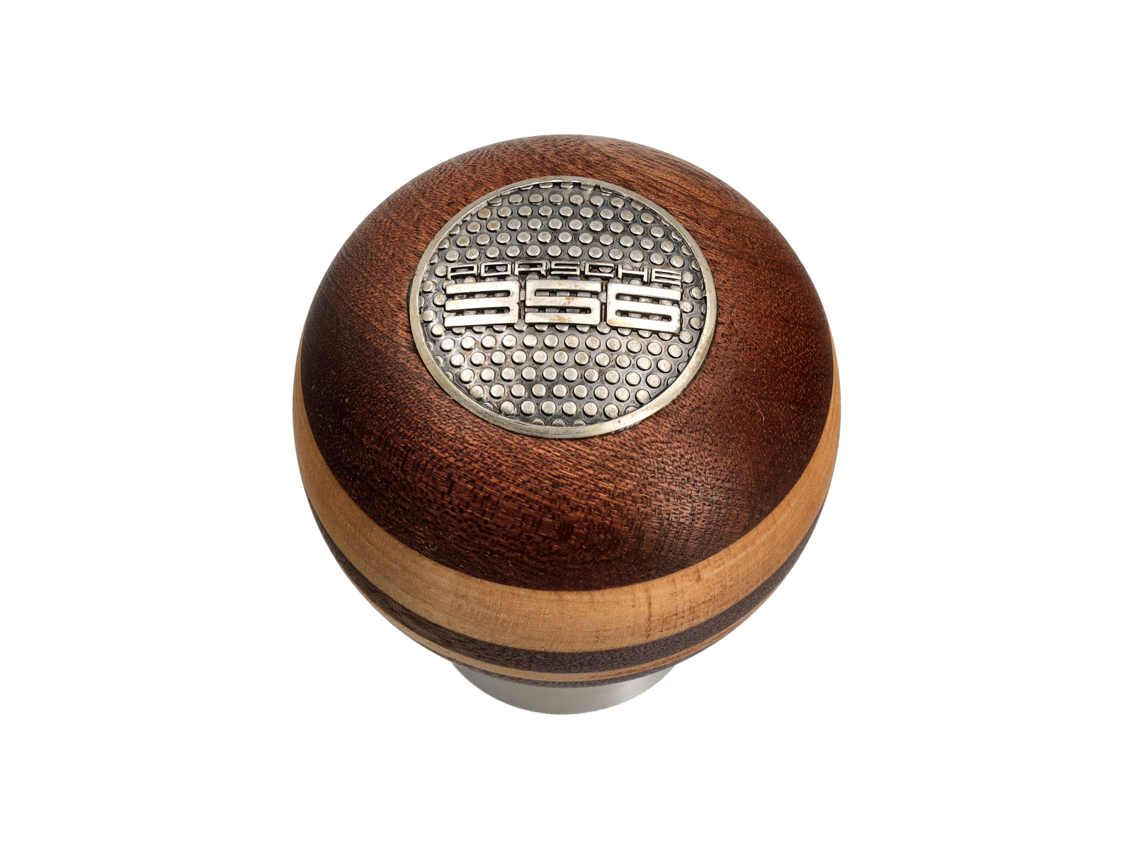 La joya de la corona de esta perilla de cambio es la parte superior plateada estampada, con el Porsche 356 estampado en ella.