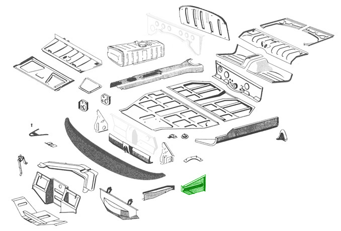 Sección frontal y paneles de chasis de época correcta para modelos Porsche antiguos, como el 356, el 911 Classic y el 912, hechos para una restauración auténtica y precisa.