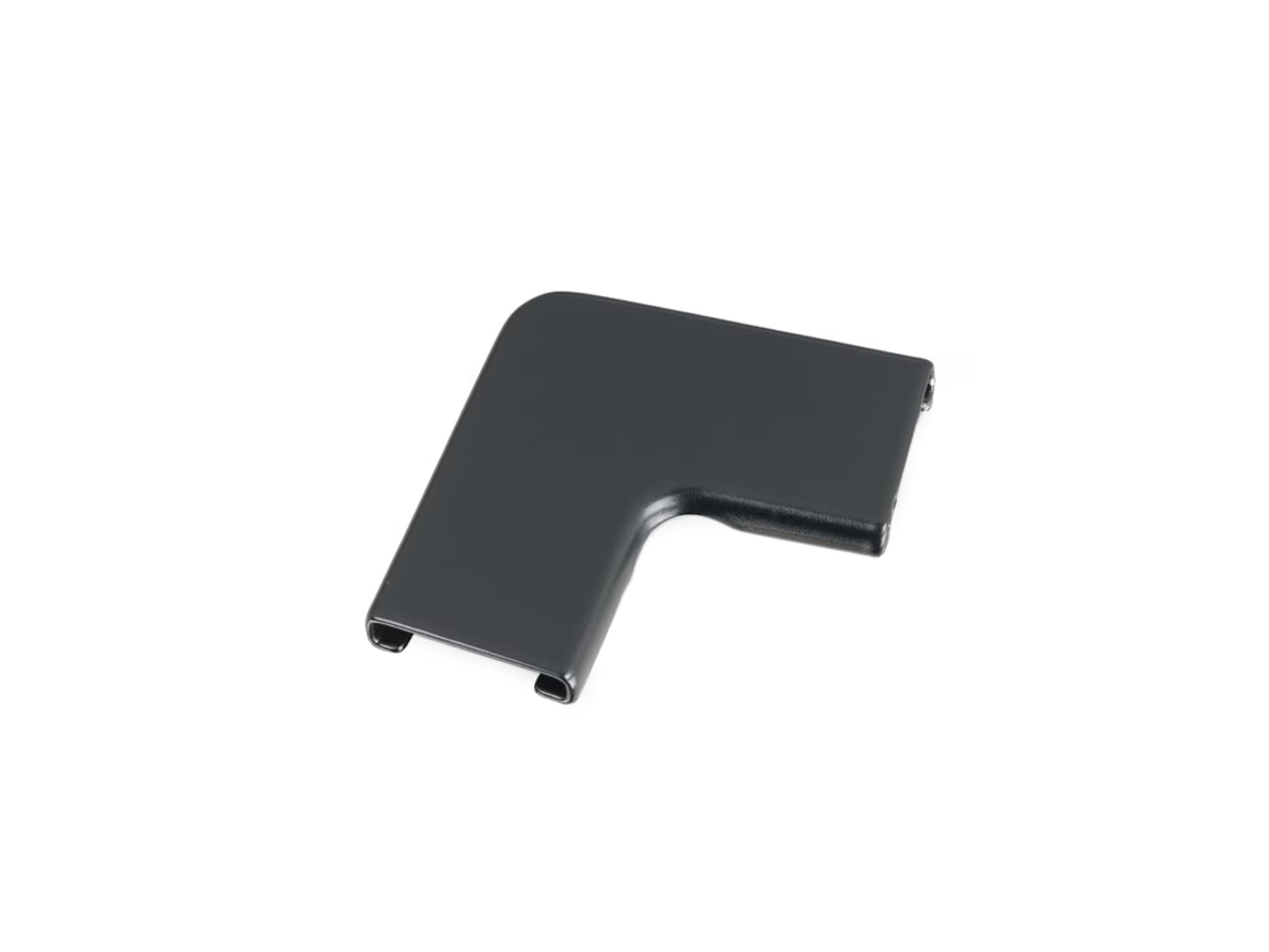 La placa de cubierta negra para conectar las mitades del marco de la ventana en la parte superior de los marcos de las ventanas laterales traseras.