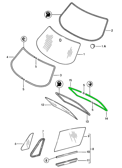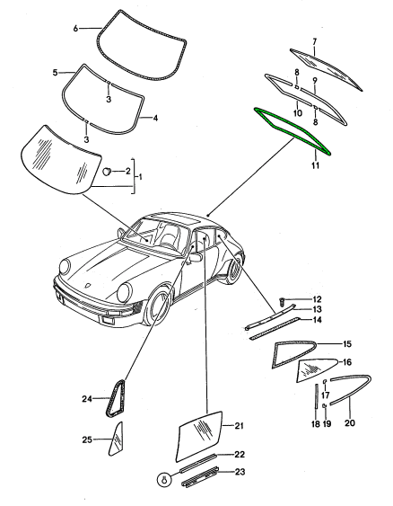 • Juntas y molduras de goma para parabrisas trasero Porsche de primera calidad.