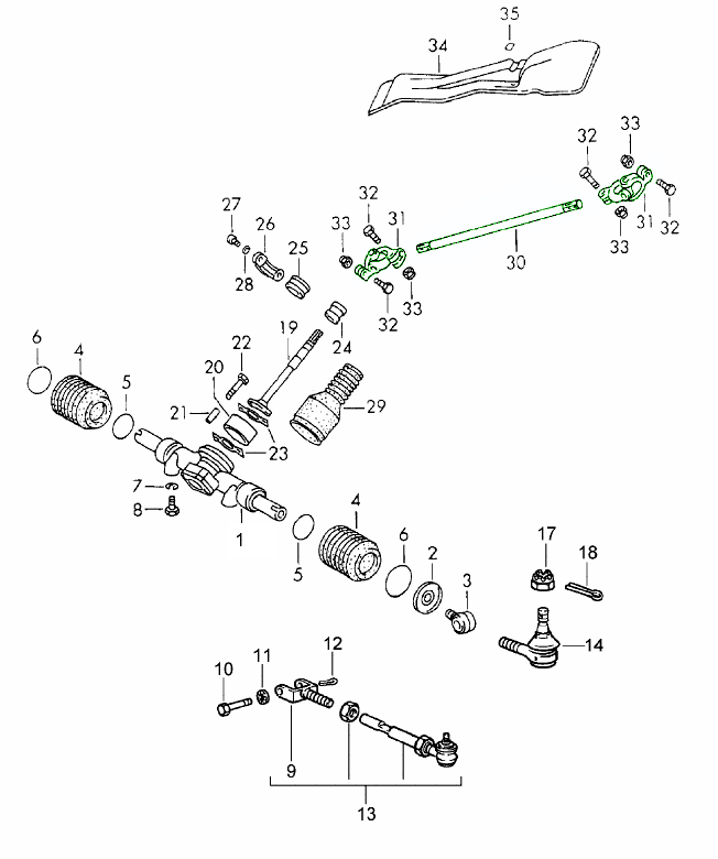 Las juntas universales de dirección y los ejes intermedios transmiten la entrada rotacional del volante a la cremallera, lo que permite flexibilidad angular y un control preciso de la dirección.