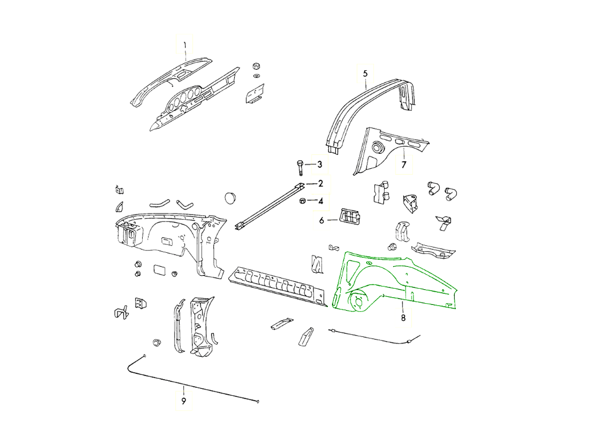 Dale vida a tu Porsche con los paneles de restauración de la parte trasera y reparación del chasis de Design911. Nuestra amplia selección de paneles de carrocería con calidad OEM y diseño de precisión incluye travesaños traseros, secciones de piso, soportes de motor y soportes de parachoques diseñados para adaptarse perfectamente a modelos Porsche clásicos y modernos. Cada componente restaura la resistencia, la alineación y la seguridad originales de fábrica, garantizando la integridad estructural y la autenticidad durante las reparaciones o restauraciones. Ya sea que estés reconstruyendo un 911 clásico, reparando un Cayman o restaurando un 356, Design911 te suministra las piezas de alta calidad en las que confían los talleres Porsche y los especialistas en restauración de todo el mundo.