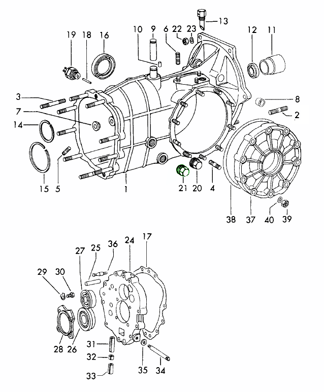 Se adapta a todas las transmisiones de "fundición a presión" con caja de magnesio Porsche 901/911 de finales del '69-'71 y 914 '70-'76.