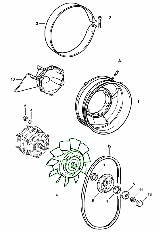 Ventilador/impulsor de alternador de 11 aspas (diámetro de 245 mm), polea de 3,25" de diámetro (también reemplaza al ventilador de 5 aspas) 911 (1980-89)