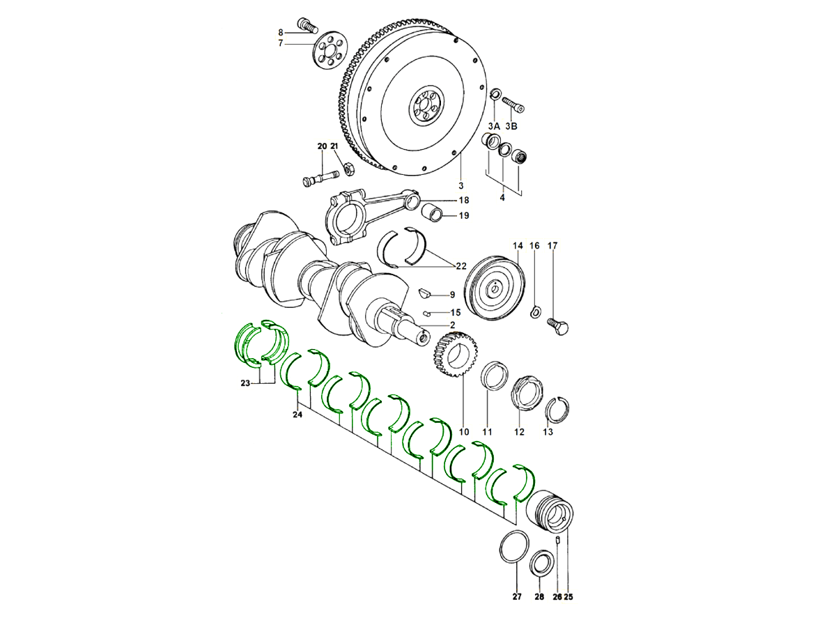 - Absorbe y distribuye las fuerzas de combustión de manera uniforme a lo largo de los muñones del cigüeñal.
