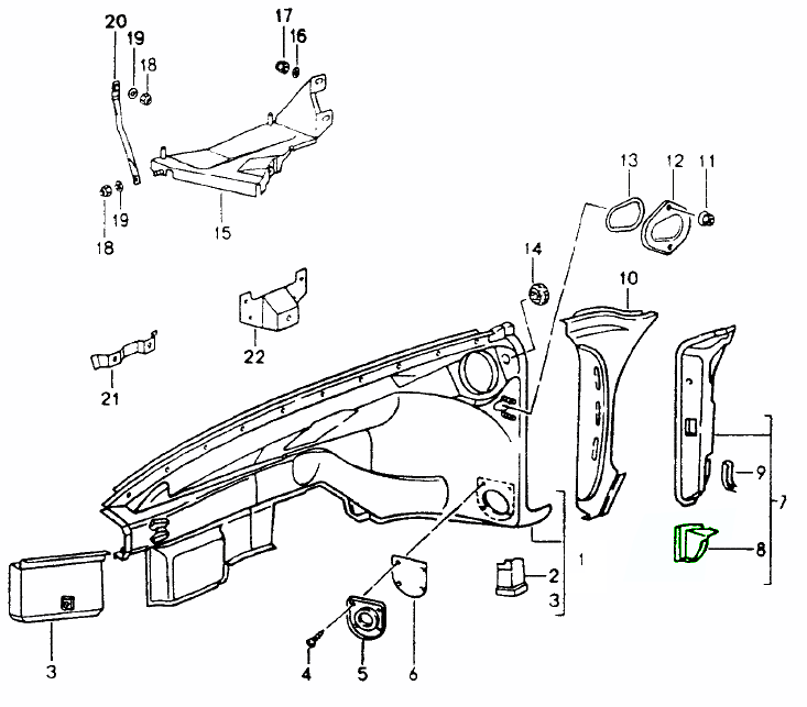 Sección frontal y paneles de chasis de época correcta para modelos Porsche antiguos, como el 356, el 911 Classic y el 912, hechos para una restauración auténtica y precisa.
