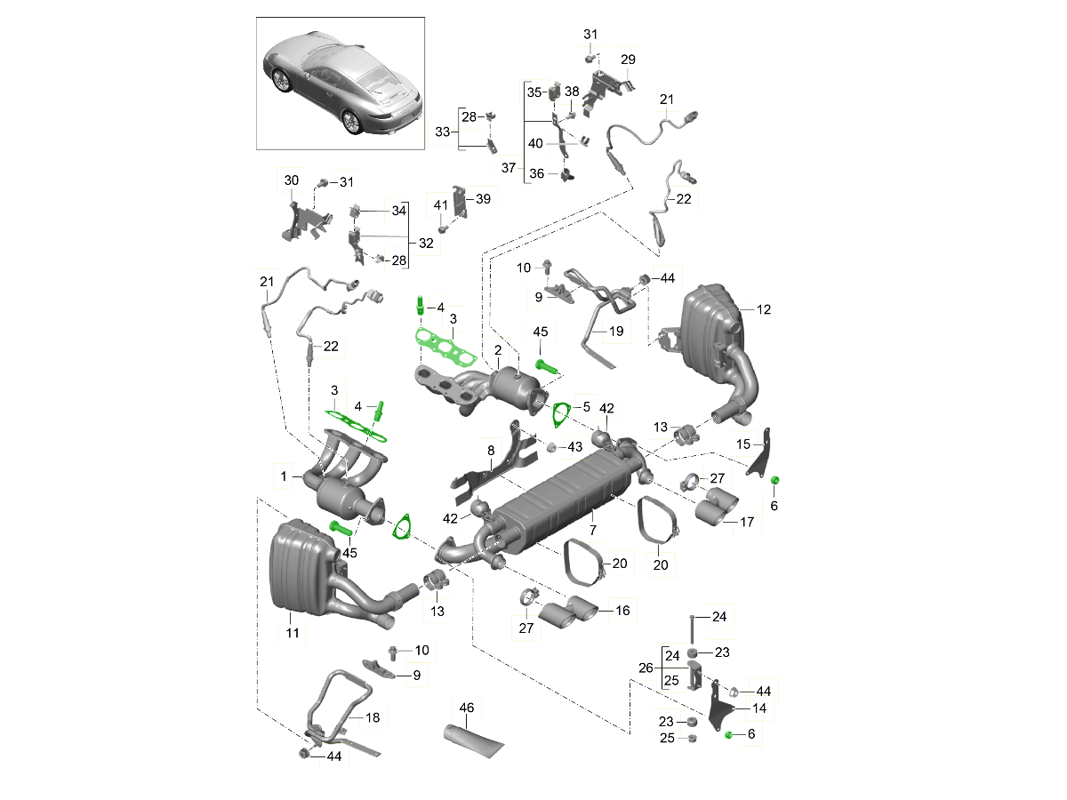 Los colectores de escape son componentes esenciales del sistema de escape de su Porsche. Están diseñados para recoger los gases de escape de los cilindros del motor y dirigirlos al sistema de escape para una expulsión eficiente. Diseñados con precisión para un alto rendimiento, estos componentes desempeñan un papel vital en la mejora de la ventilación del motor, la potencia y el ahorro de combustible.