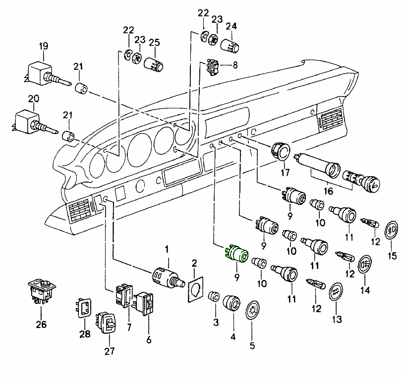 Claxon, faro adicional, calefacción de luneta trasera, faro antiniebla, motor de arranque, elevalunas eléctrico, aire acondicionado, luz de freno, etc.