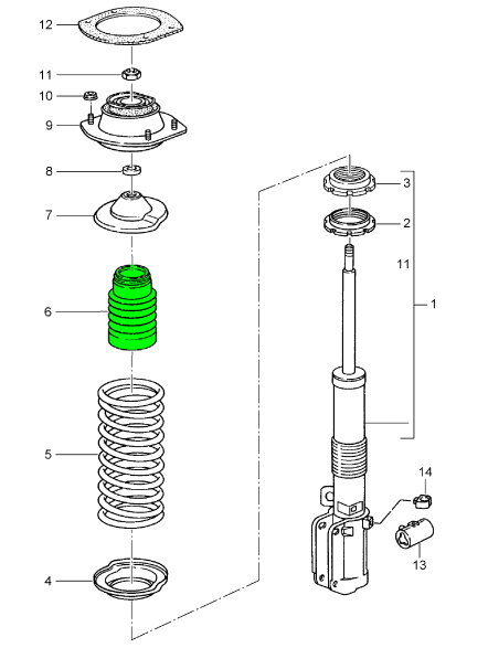 • Ubicación: Eje delantero, montaje superior del conjunto amortiguador/puntal, se adapta a los amortiguadores izquierdo y derecho.