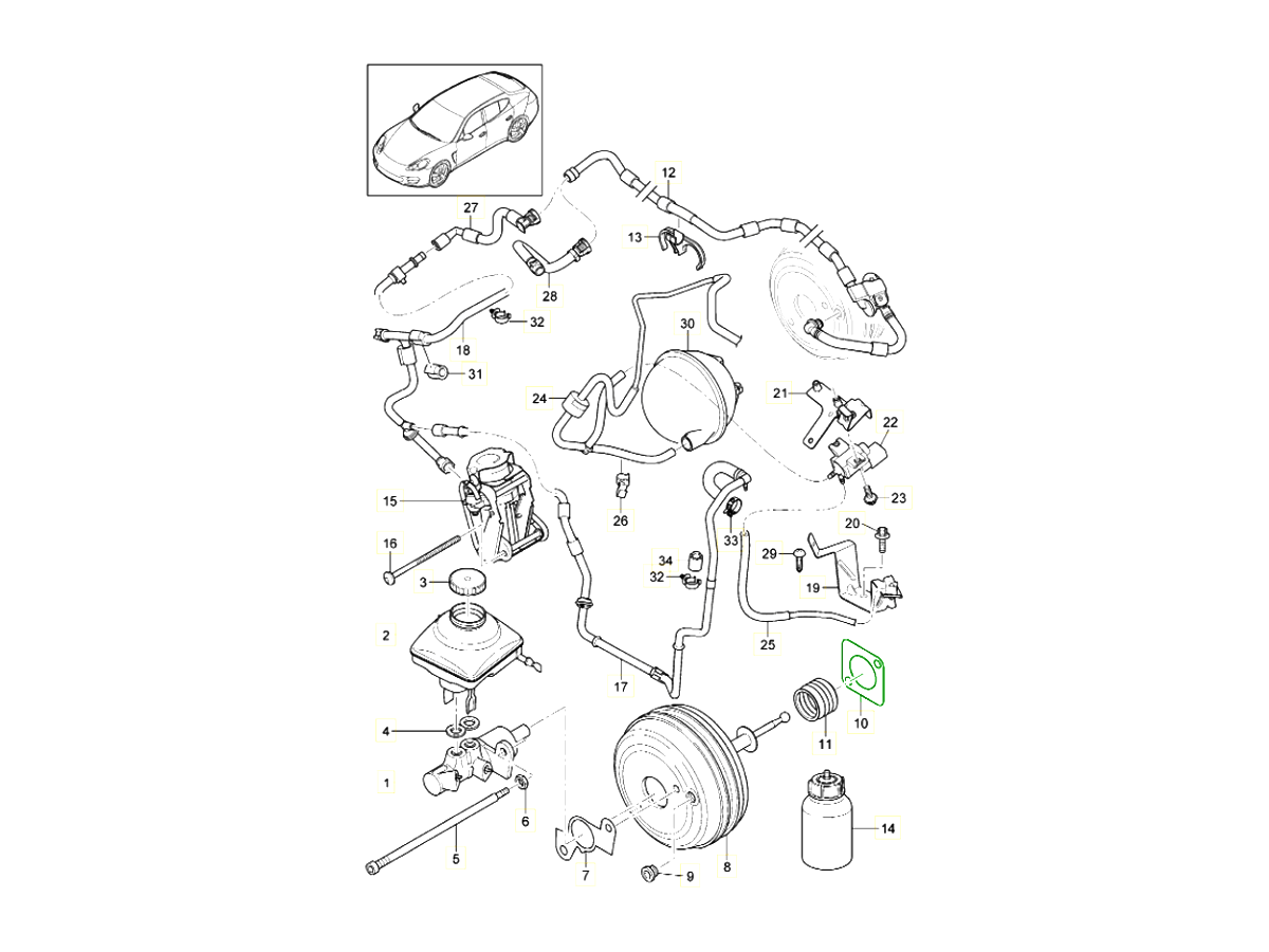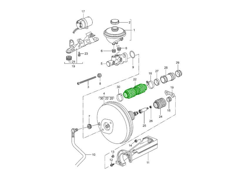 Con el tiempo, el fuelle puede agrietarse o romperse, provocando fugas de vacío, una reducción de la asistencia de frenado o incluso un fallo prematuro del servofreno. Sustituirlo por esta pieza original de Porsche restaura el sellado correcto, protege el interior del servofreno y garantiza un frenado seguro y constante.