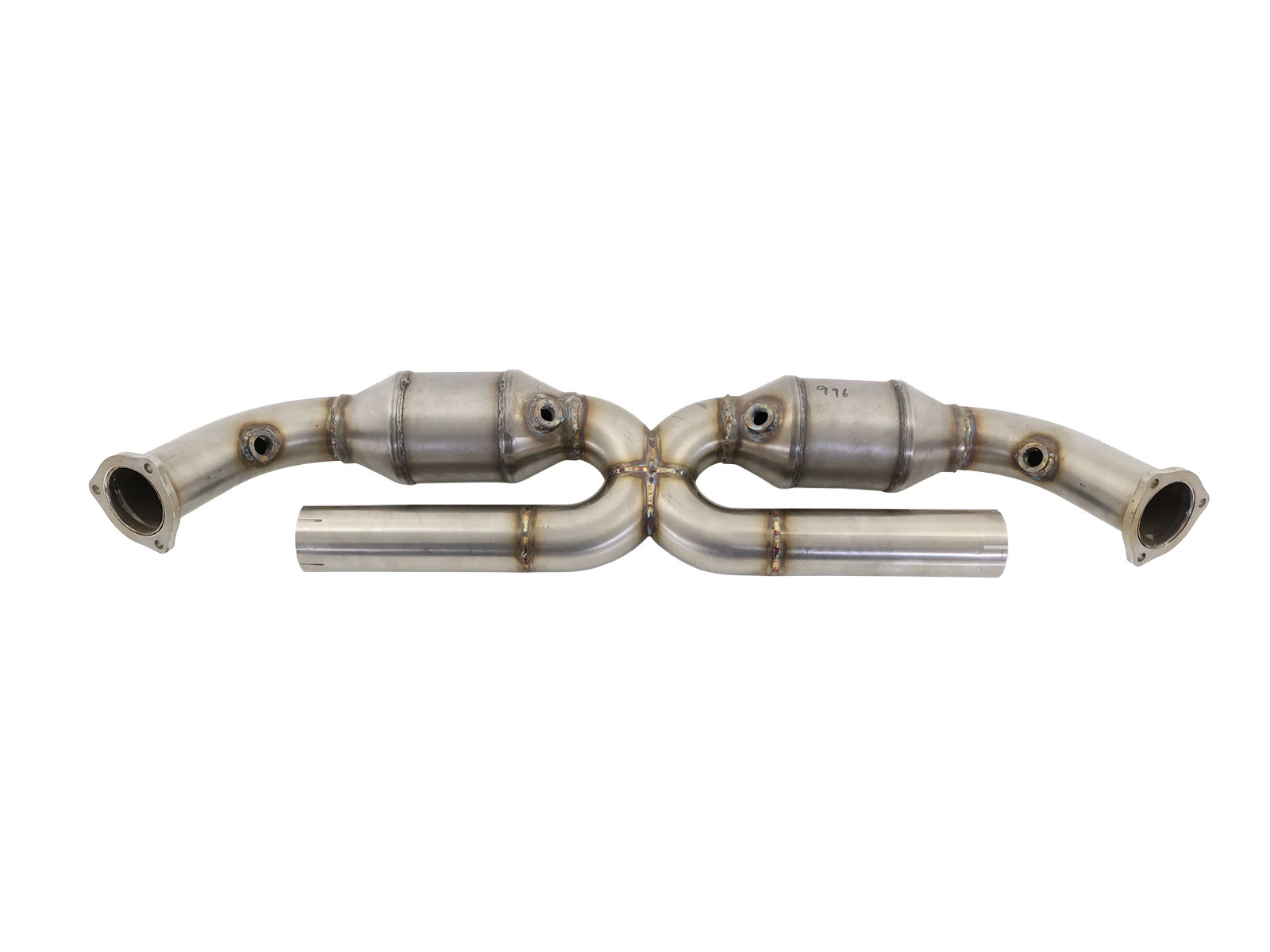 Los convertidores catalíticos DesignTek para competición deportiva aumentan la potencia y el par motor de los 996. Tubos doblados con mandril CNC de acero inoxidable T304 de alta calidad para un flujo de escape máximo.