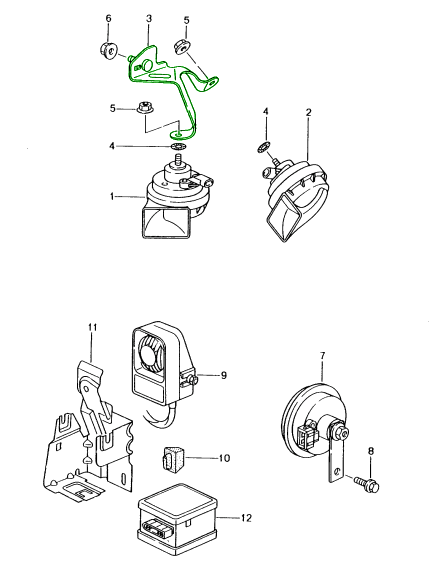 Las bocinas eléctricas son un elemento de seguridad esencial en todos los Porsche, diseñadas para alertar a otros conductores y peatones en momentos críticos. Mediante un mecanismo de diafragma eléctrico, la bocina produce un sonido potente y distintivo que garantiza que su presencia sea detectada, ya sea en el tráfico urbano o en carretera.