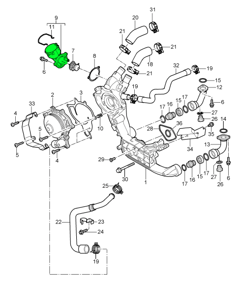 Porsche 996 Carrera 3.6L - para la temperatura del refrigerante