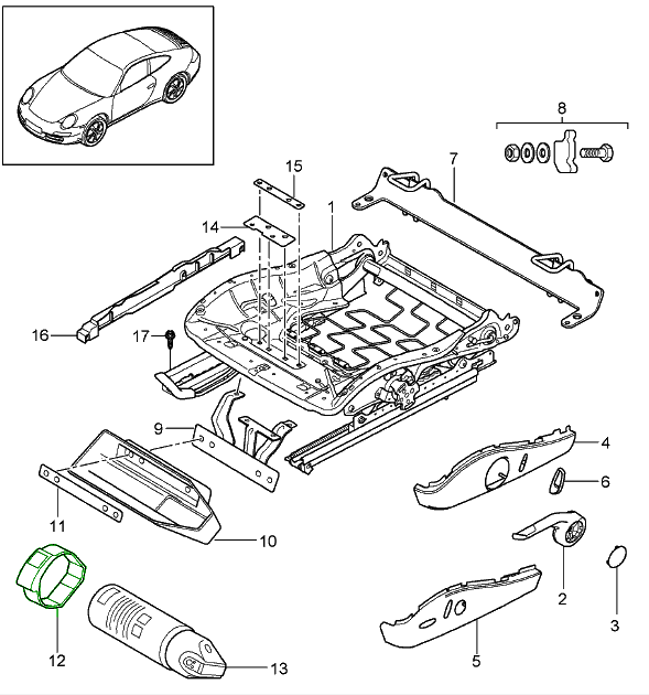 Modelos: 997 ('05-'07) y Boxster '05 - Compatible con asientos eléctricos y manuales - Solo lado del conductor. No compatible con el asiento deportivo adaptable.