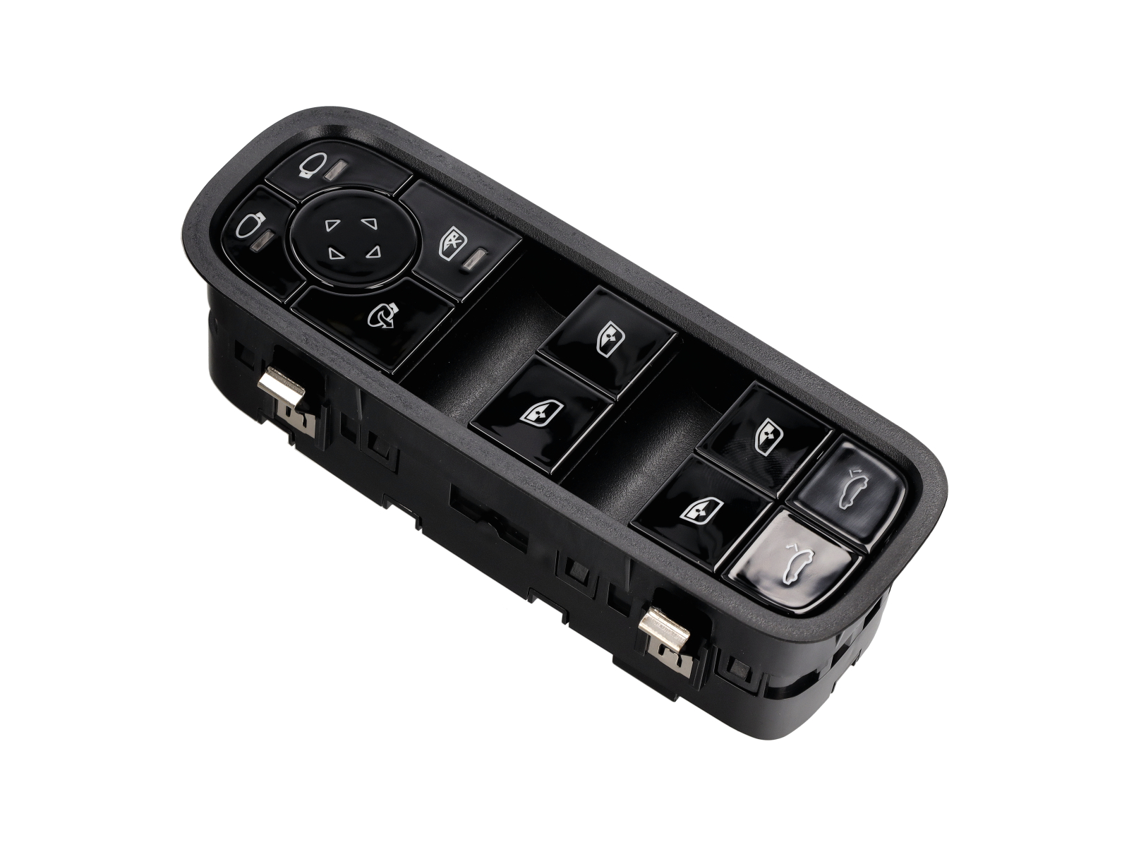 Un interruptor de elevalunas eléctrico es una unidad de control eléctrica montada en el panel de la puerta o la consola central que permite subir y bajar las ventanillas electrónicamente. Al presionarlo, envía una señal al motor de la ventanilla, activando el mecanismo de elevación.