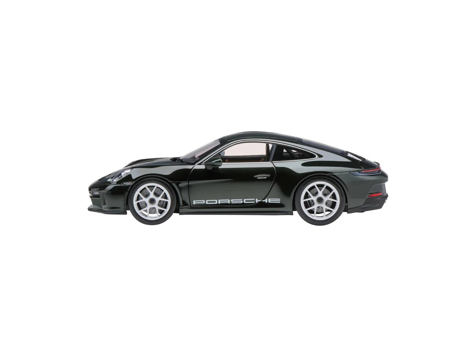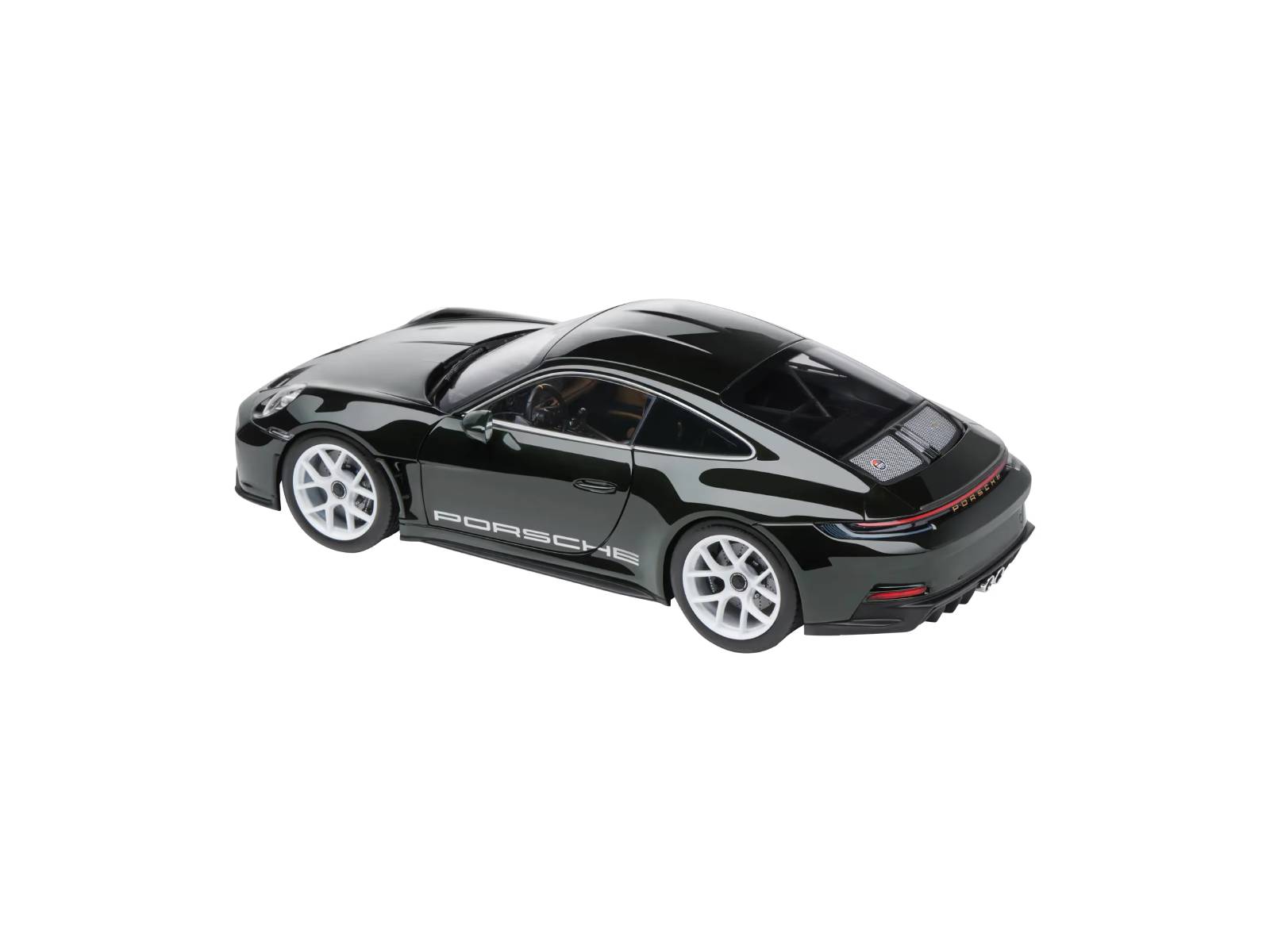El modelo exclusivo y limitado del Porsche 911 S/T (992) a escala 1:43 impresiona por su atención al detalle y es una pieza imprescindible para cualquier coleccionista. Está fabricado en fundición a presión. Exterior en verde sombra, interior en negro. Presentado en un práctico embalaje de regalo.
