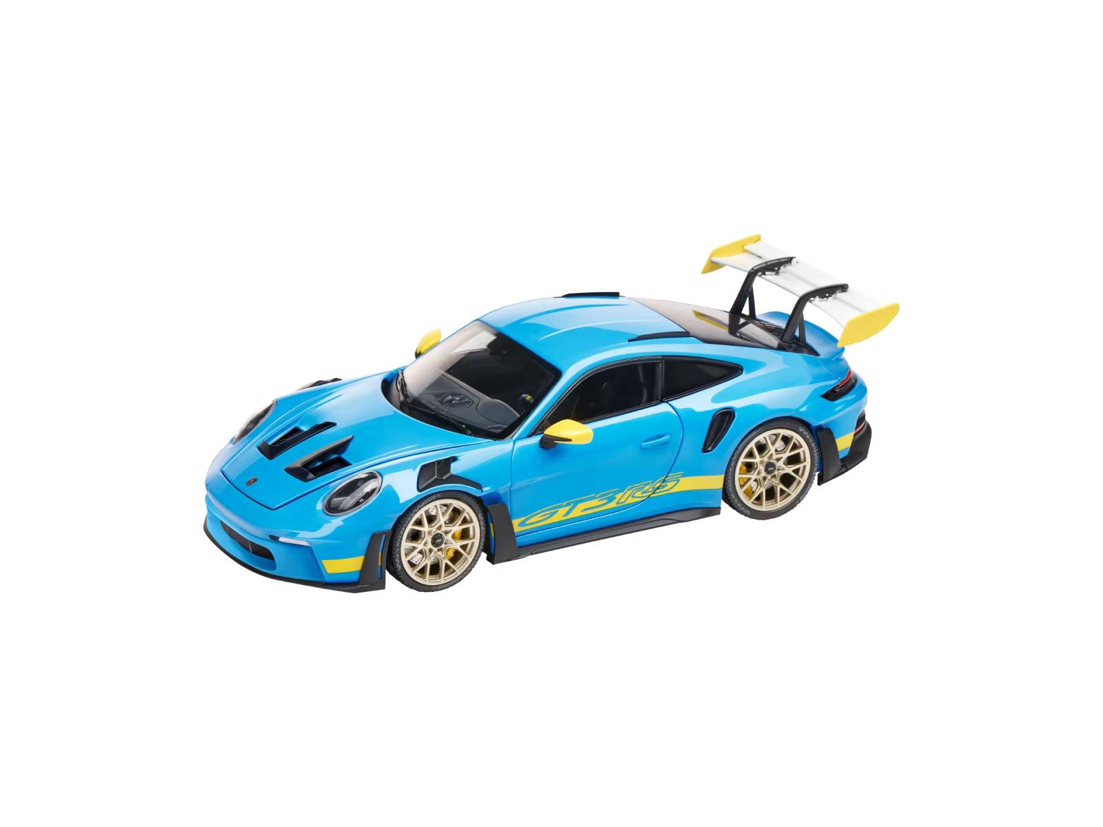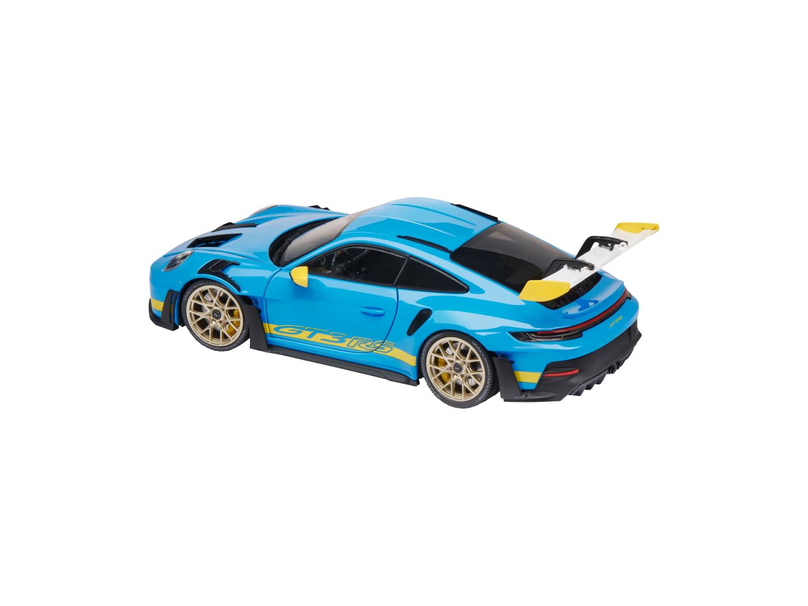 El exclusivo modelo a escala 1:18 del Porsche 911 GT3 RS (992) exhibe una impresionante atención al detalle y merece un lugar en cualquier colección. Con el exclusivo embalaje incluido, se convierte en el regalo perfecto para cualquier fan de Porsche. Fabricado en resina. Exterior azul/amarillo, interior negro.