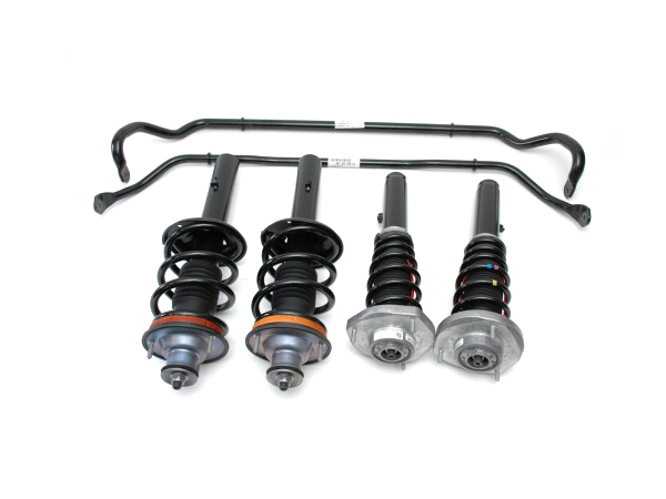 Juego completo de amortiguadores y muelles. Combina muelles más cortos y rígidos con barras estabilizadoras más gruesas (delanteras y traseras), además de amortiguación y rebote más firmes en los cuatro amortiguadores. La altura del vehículo se ha reducido 20 mm.