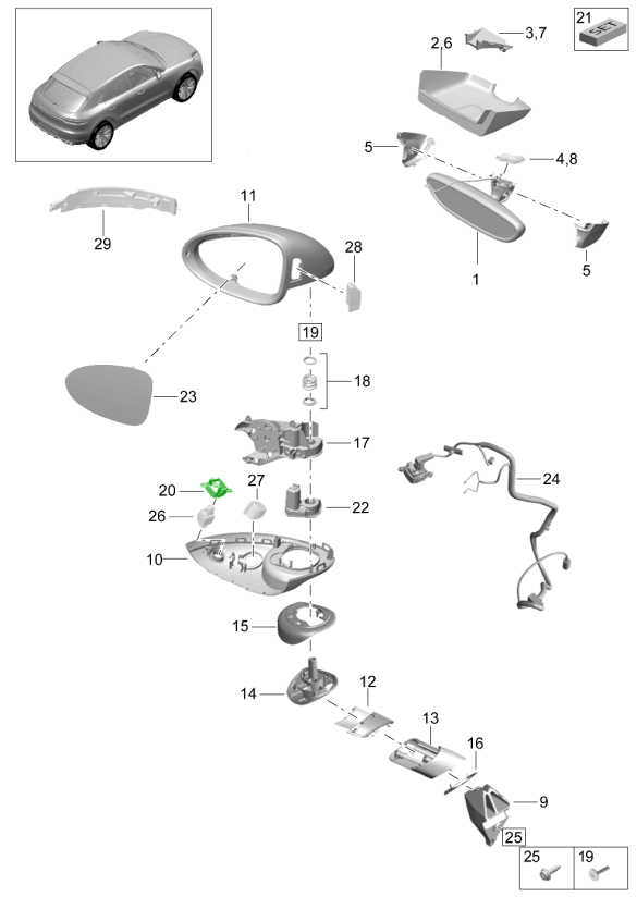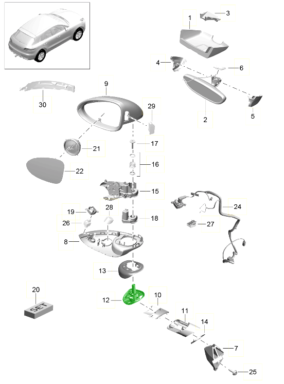 Nuestra colección incluye conjuntos completos de retrovisores exteriores, retrovisores interiores, carcasas, repuestos de cristales y mecanismos de ajuste, todos fabricados según las especificaciones del fabricante original (OEM) para una integración perfecta y un rendimiento duradero. Ya sea que esté restaurando un 911 clásico, reparando componentes dañados o actualizando su retrovisor eléctrico con un moderno retrovisor, Design911 ofrece soluciones de retrovisores originales y de reproducción de la más alta calidad para cada Porsche.
