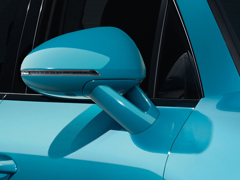 La mitad inferior del espejo exterior, incluida la base del espejo en forma de V, se puede pintar del color exterior con un diseño único.