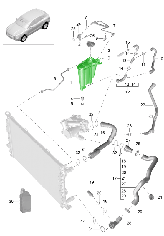 Botellas de refrigerante/tanques de expansión: refrigeración fiable para vehículos Porsche