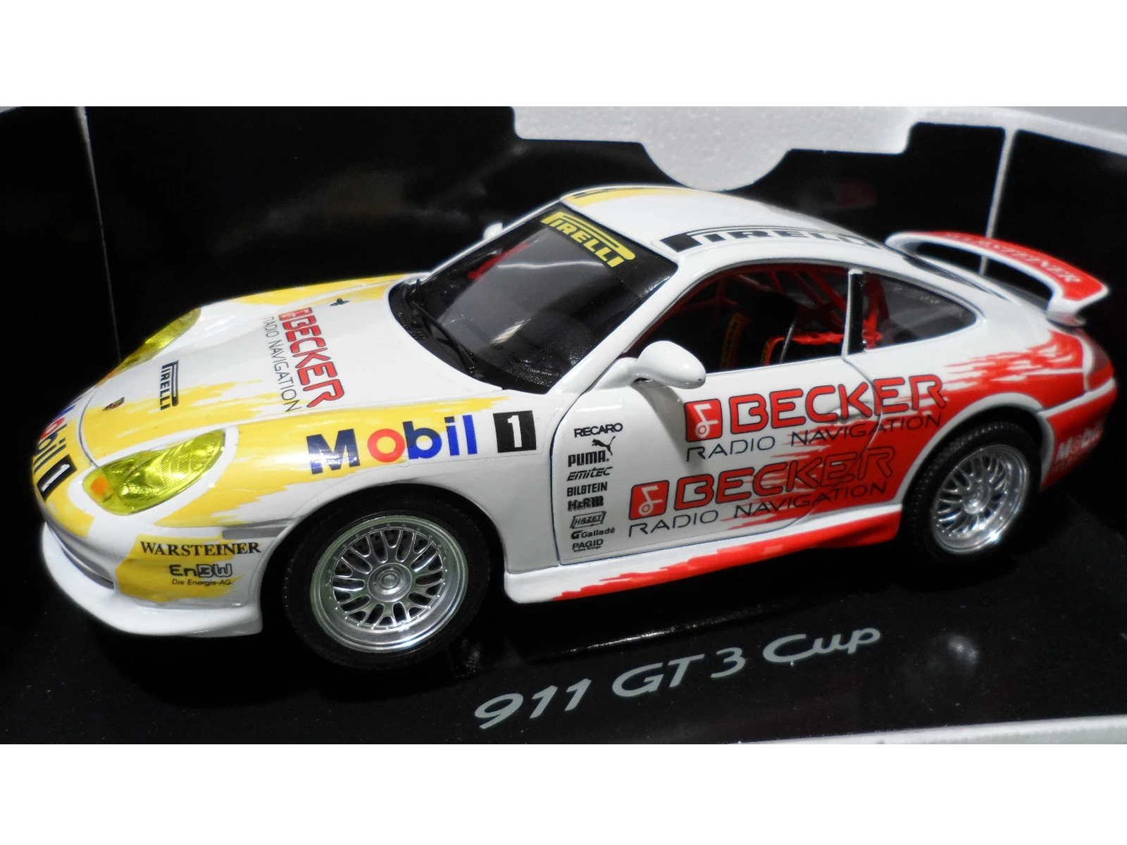 El modelo a escala 1:18 es una representación fiel del Porsche 996 GT3 Cup de 2005 y sin duda impresionará incluso al coleccionista más exigente. Fabricado en Italia con materiales de alta calidad, es una pieza imprescindible para cualquier aficionado a las carreras. Las puertas, el capó y el compartimento trasero del motor se abren.