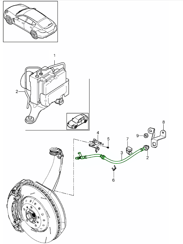 • Mangueras y accesorios de freno estándar Porsche de primera calidad.