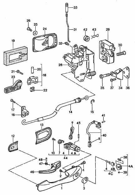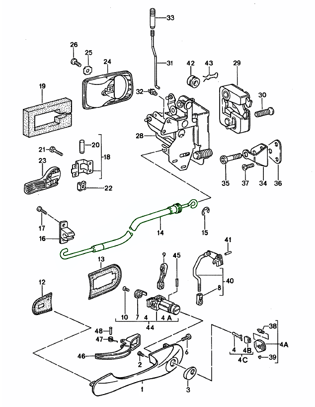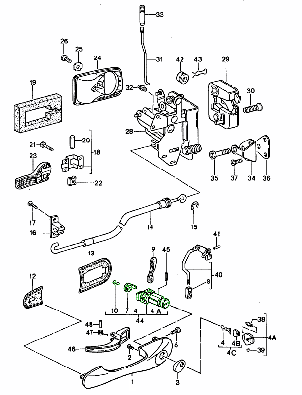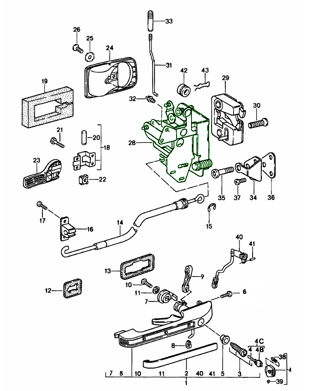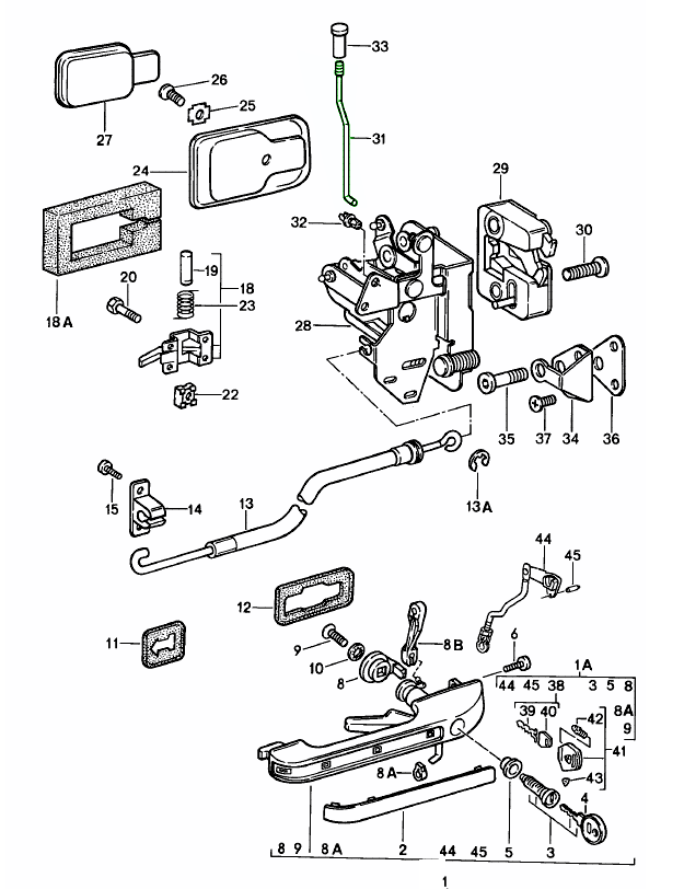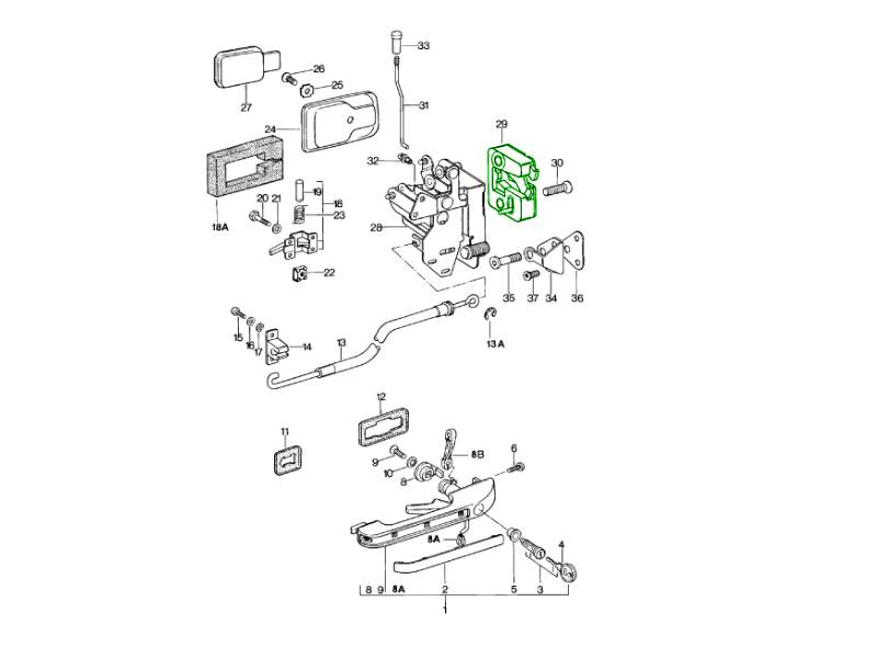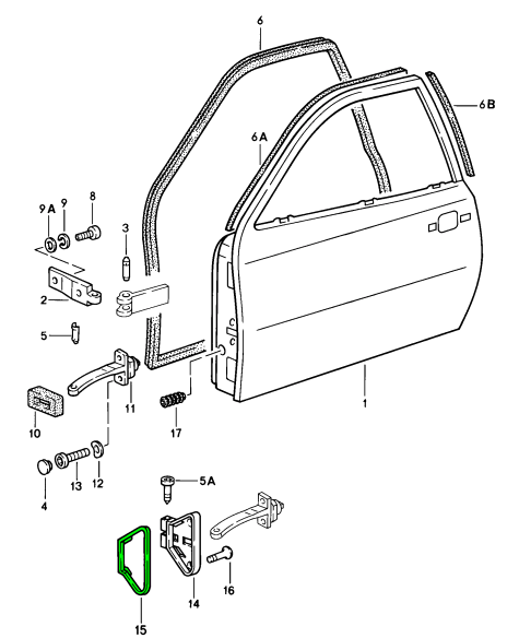 Soportes, sellos, tornillos y piezas de moldura necesarios para una instalación segura y un rendimiento confiable a largo plazo de las manijas y cerraduras de las puertas Porsche.