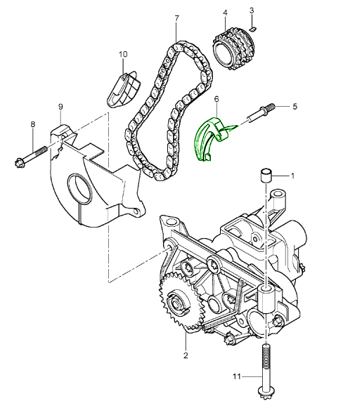 Piñón de la cadena de transmisión de la bomba de aceite.