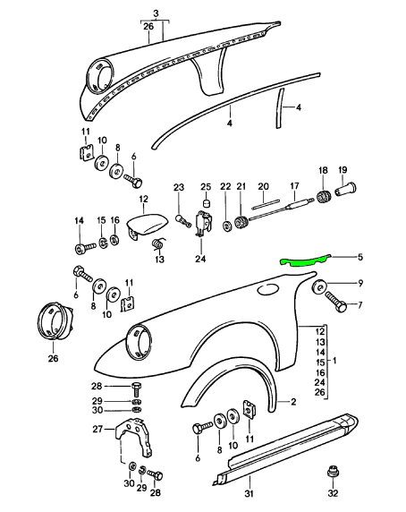 Los sellos de guardabarros a panel son esenciales para proteger la carrocería de su Porsche y mantener una alineación perfecta de los paneles. Estos sellos de goma moldeados con precisión se colocan entre los guardabarros (alas) y los paneles adyacentes, creando una barrera impermeable y a prueba de polvo que evita que la suciedad y la humedad se acumulen en los huecos. Al eliminar el contacto metal con metal, reducen la vibración, previenen la corrosión y conservan las líneas limpias y uniformes que definen la ingeniería Porsche.