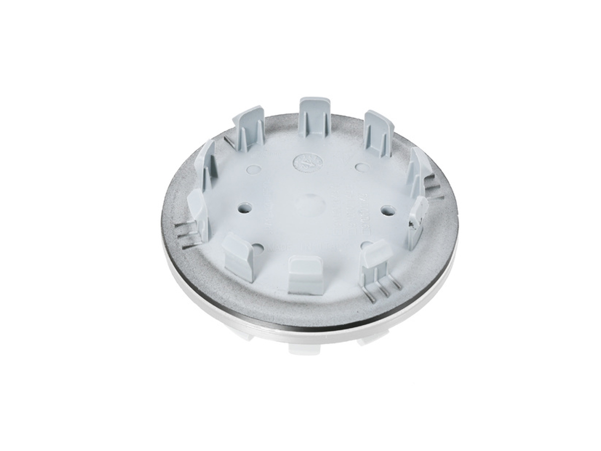 Tapas centrales cóncavas de plástico con escudo en color Porsche.